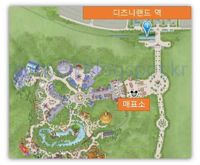 디즈니랜드 하차 후 도보로 매표소로 이동 후 입장하면 된다.